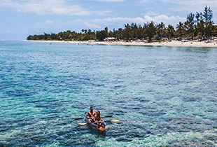 Protégée par une barrière de corail, la côte ouest déploie ses plages de sable blanc et noir, invitant à la baignade sécurisée dans une eau cristalline et chaude toute l’année.